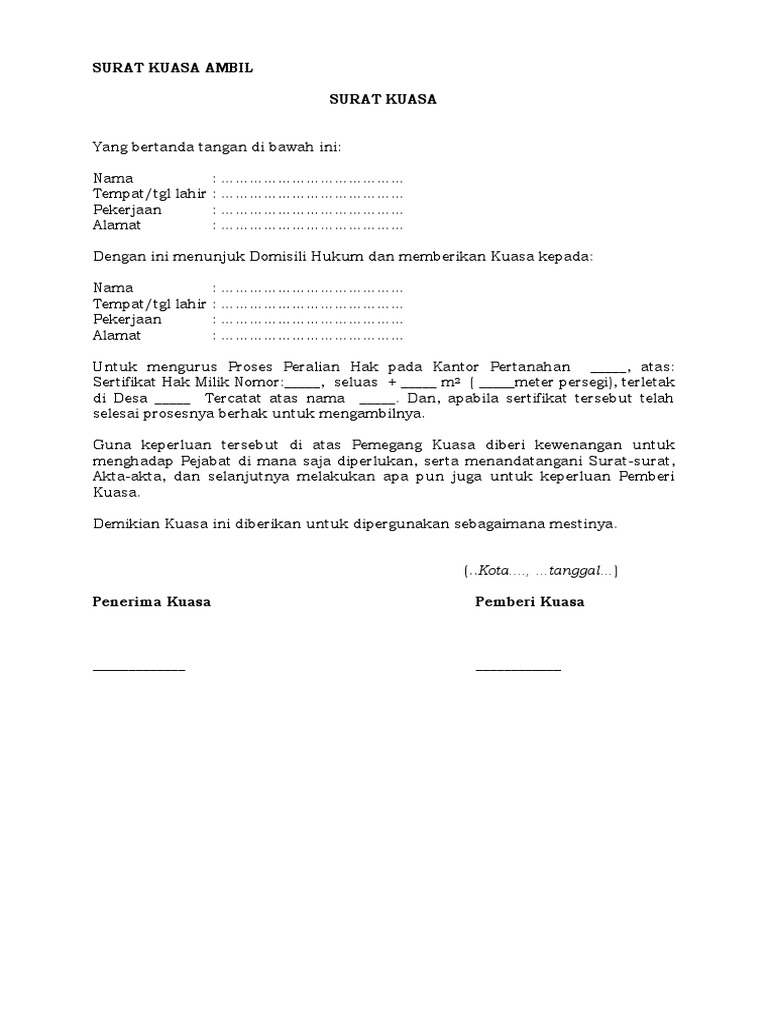 Download Contoh Surat Kuasa Pengurusan Sertifikat Tanah Doc - Contoh Surat Kuasa Balik Nama Motor Doc - Kekuasaan pengacara diperlukan ketika seseorang tidak dapat langsung melakukan pekerjaan t.. Contoh surat kuasa pengambilan bpkb, ijazah ataupun sertifikat tanah. Ketika ingin menjual tanah dan mewakilkan orang lain, maka disitulah peranan penting surat kuasa dari pemilik. Contoh surat kuasa perpanjangan dan pengurusan stnk. Jangan sampai salah bikin, berikut adalah contoh surat kuasa pengambilan sertifikat tanah yang baik dan benar. Surat kuasa pengurusan imb saya, yang bertandatangan di bawah ini: